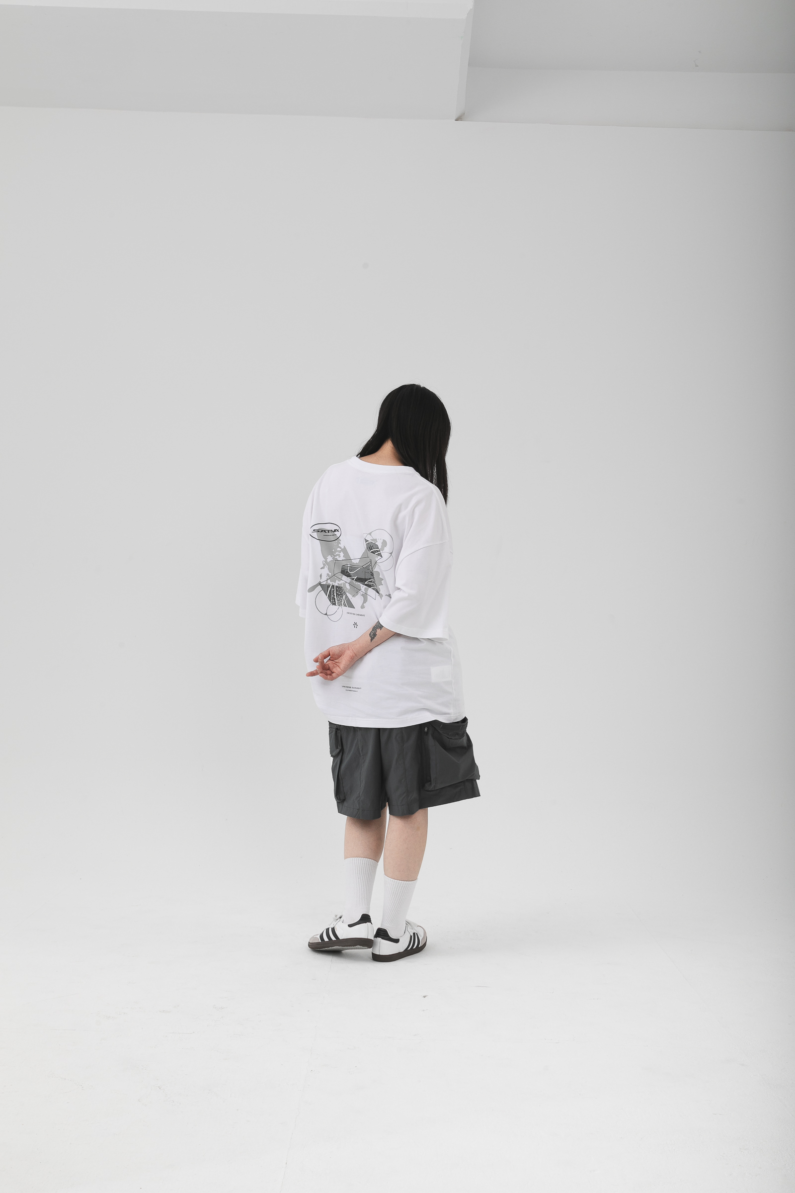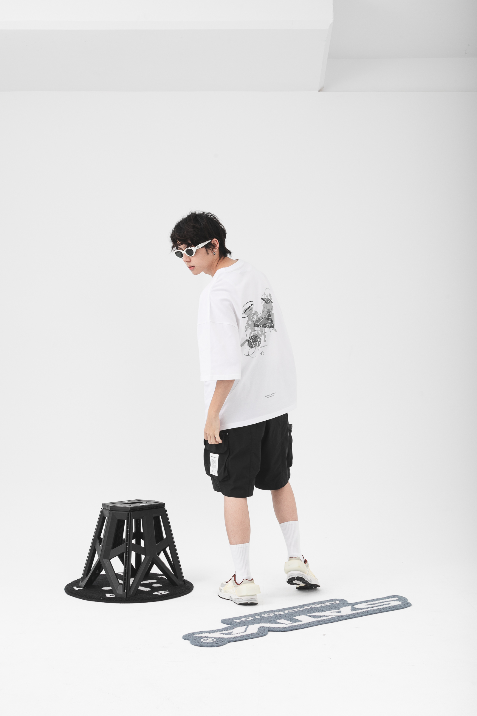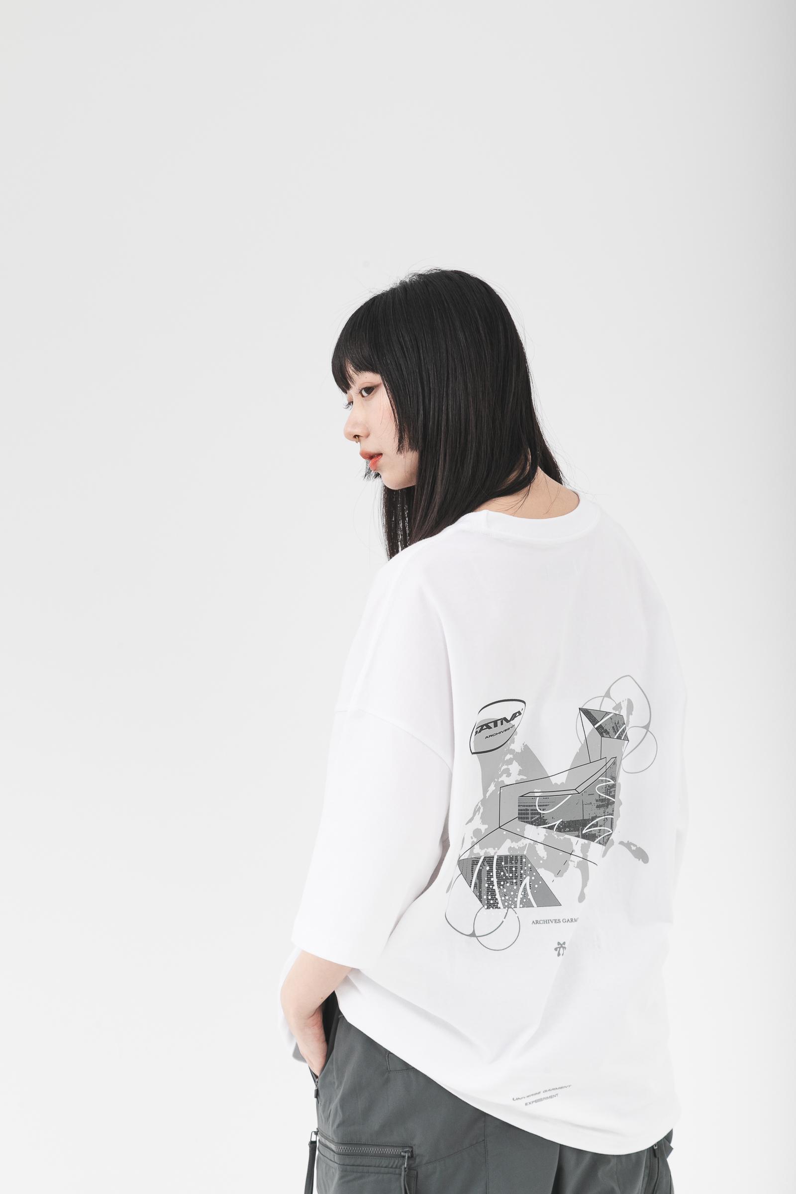 本次作品採100% Cotton透氣舒適純棉,由向度延伸至蝴蝶效應引起的共鳴,並以街景概念層層遞進,融入兼具品牌意象的主視覺LOGO,展現科技速差與日常寓意;寬鬆版型賦予其穿著舒適度以及日常著用的便利性,輔以TAGLINE點綴整體視覺層次,羅織品牌向度與由虛無伊始,所引起的穿搭連鎖反應。