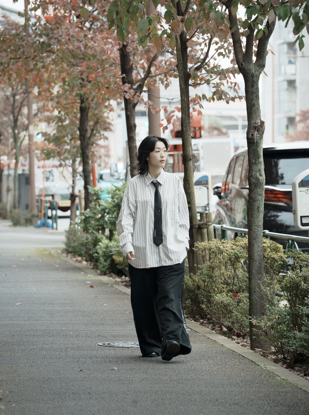 24 A/W Archive 01 首款襯衫之作,套用“H.BK-02”設計概念,並植入SATIVASTUDIO對於日常生活穿搭的沈浸儀式感,以標誌性直紋作為主體,極簡之初賦予場域的著裝意識,同時注入“Symbolic” Necktie 作品,為整體穿搭層次與搭配動機更加完善,影擬城市機能與都市履行提供另類想像與形塑樣態。