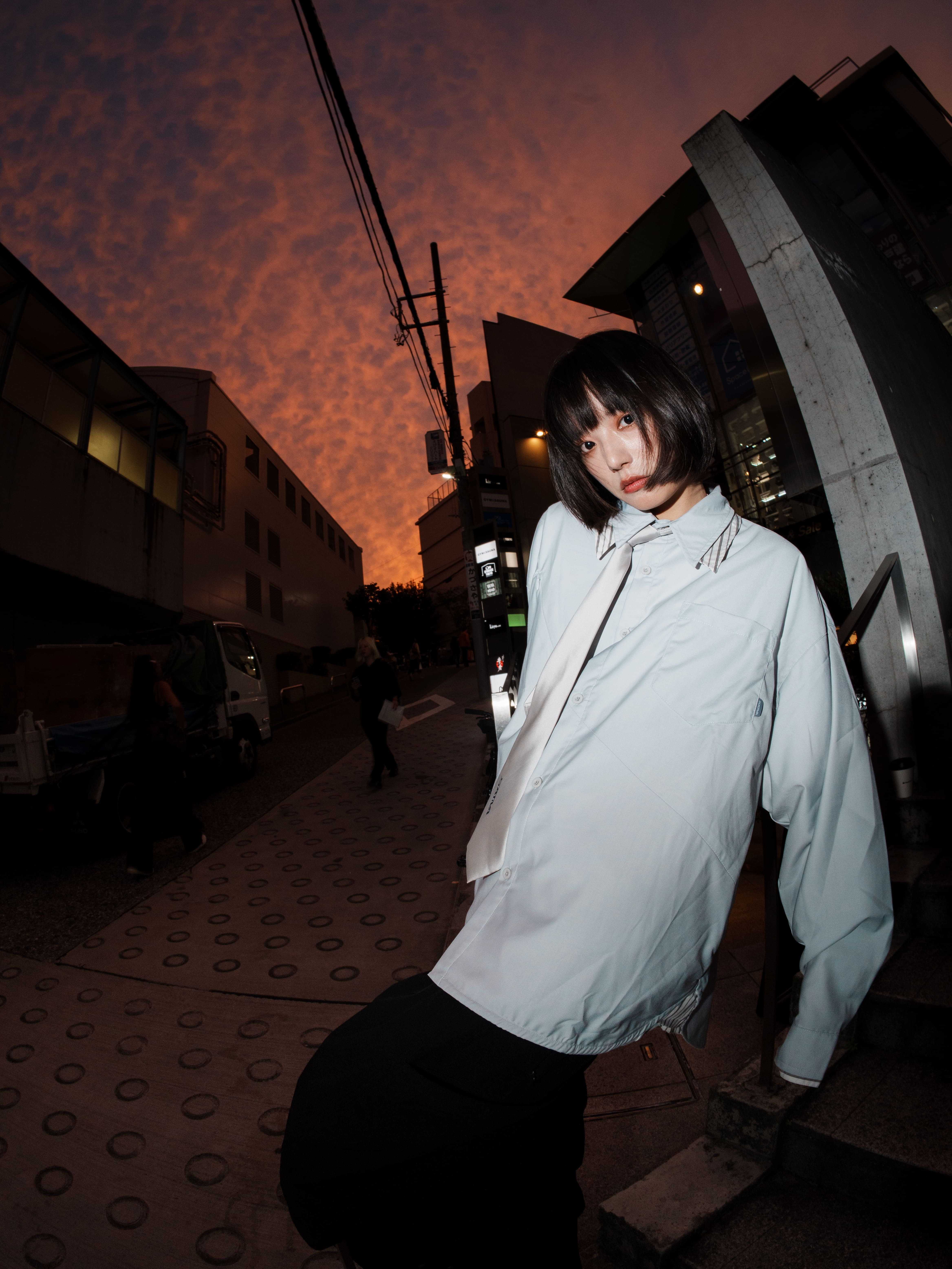 首款25 A/W Archive 01襯衫之作,嘗試將“H.BK”以及”TS”系列進行跨系/域融合,標誌著SATIVASTUDIO著重的”Urban Outfit”概念,強調為日常生活穿搭的儀式感與穿著張力,配以直紋作為襯衫主體,既重組關於襯衫的既定印象,同時融入再現意識於其中。延續“TS-03”的解構意象,在實驗階段假想踏入街景時所呈現的簡潔有力、穿搭邏輯以及場合儀式,“H-BK-04”一概涵括,油然而生。