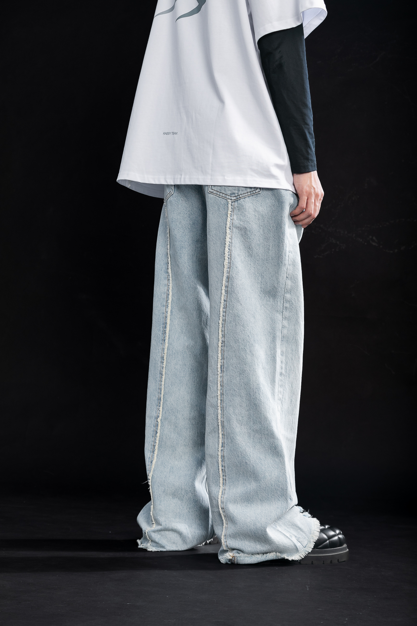 Kaesy flares damaged jeans