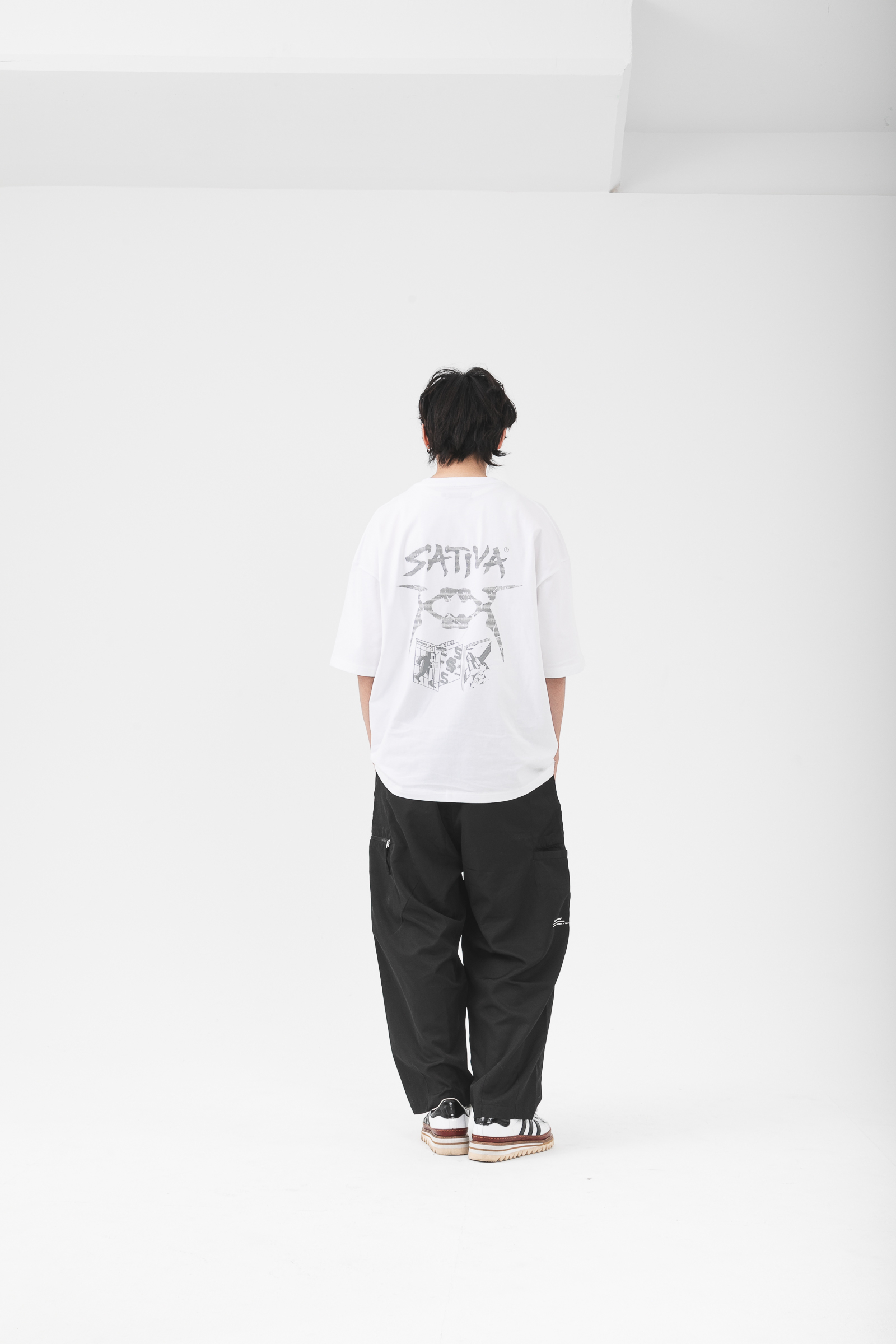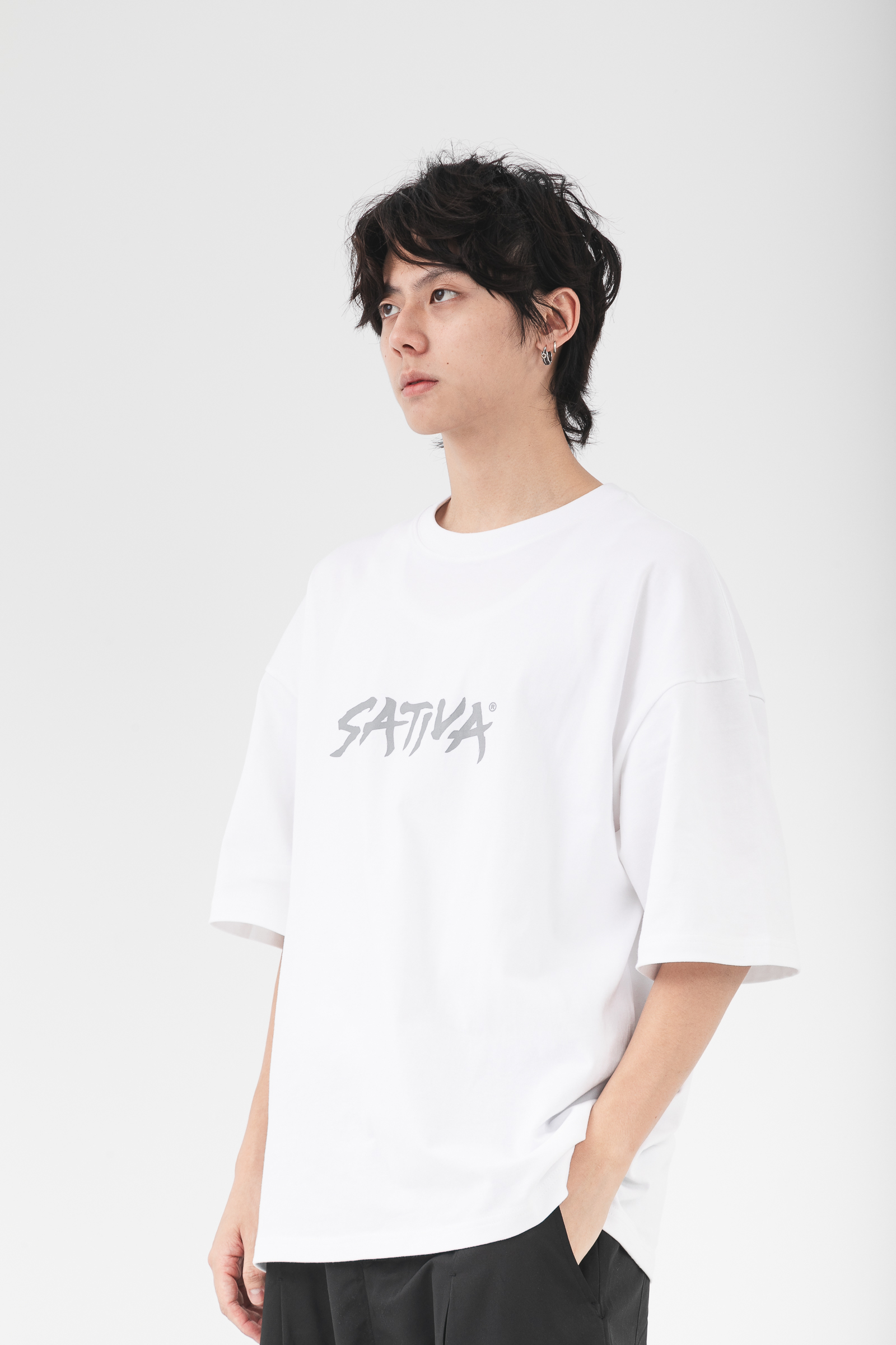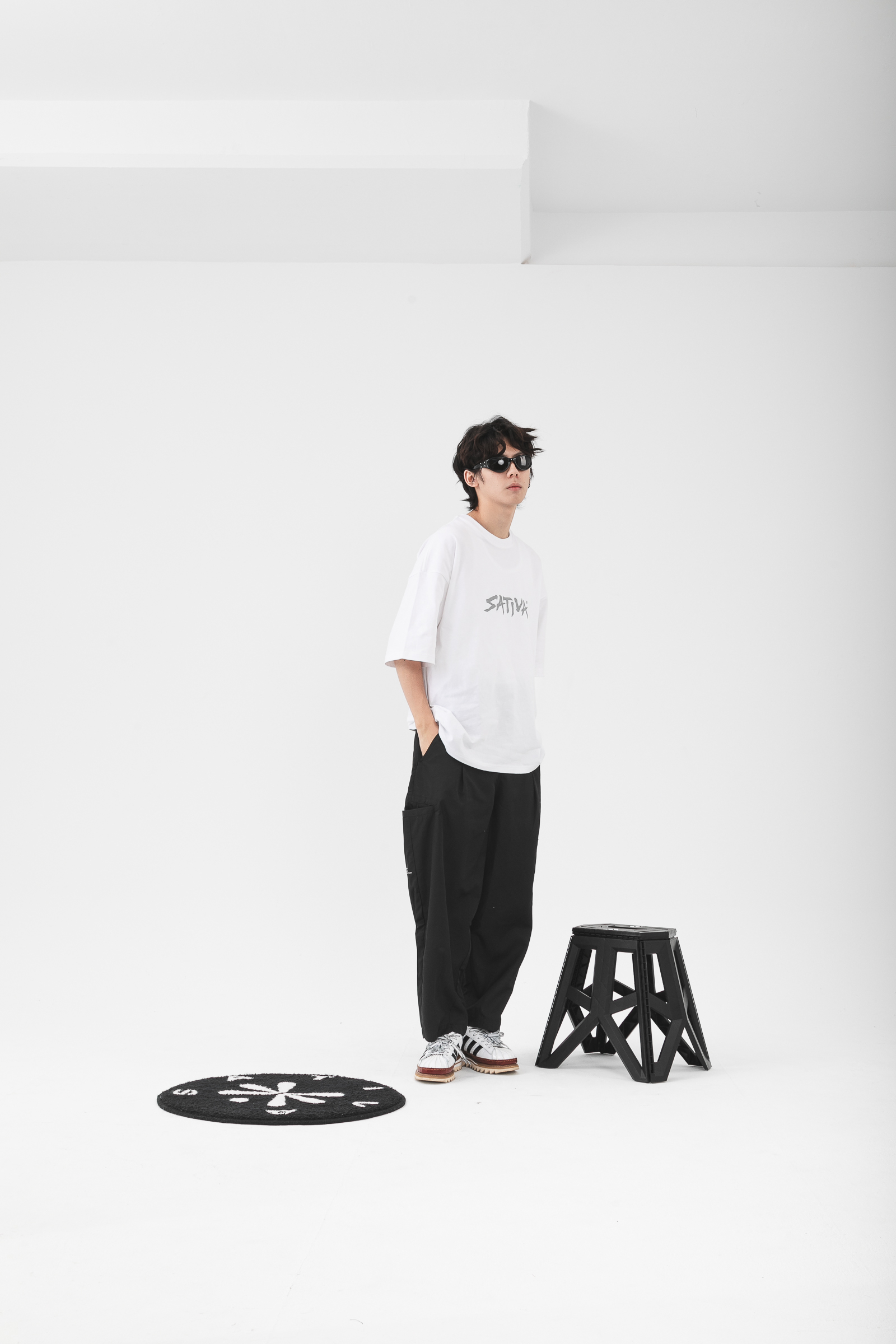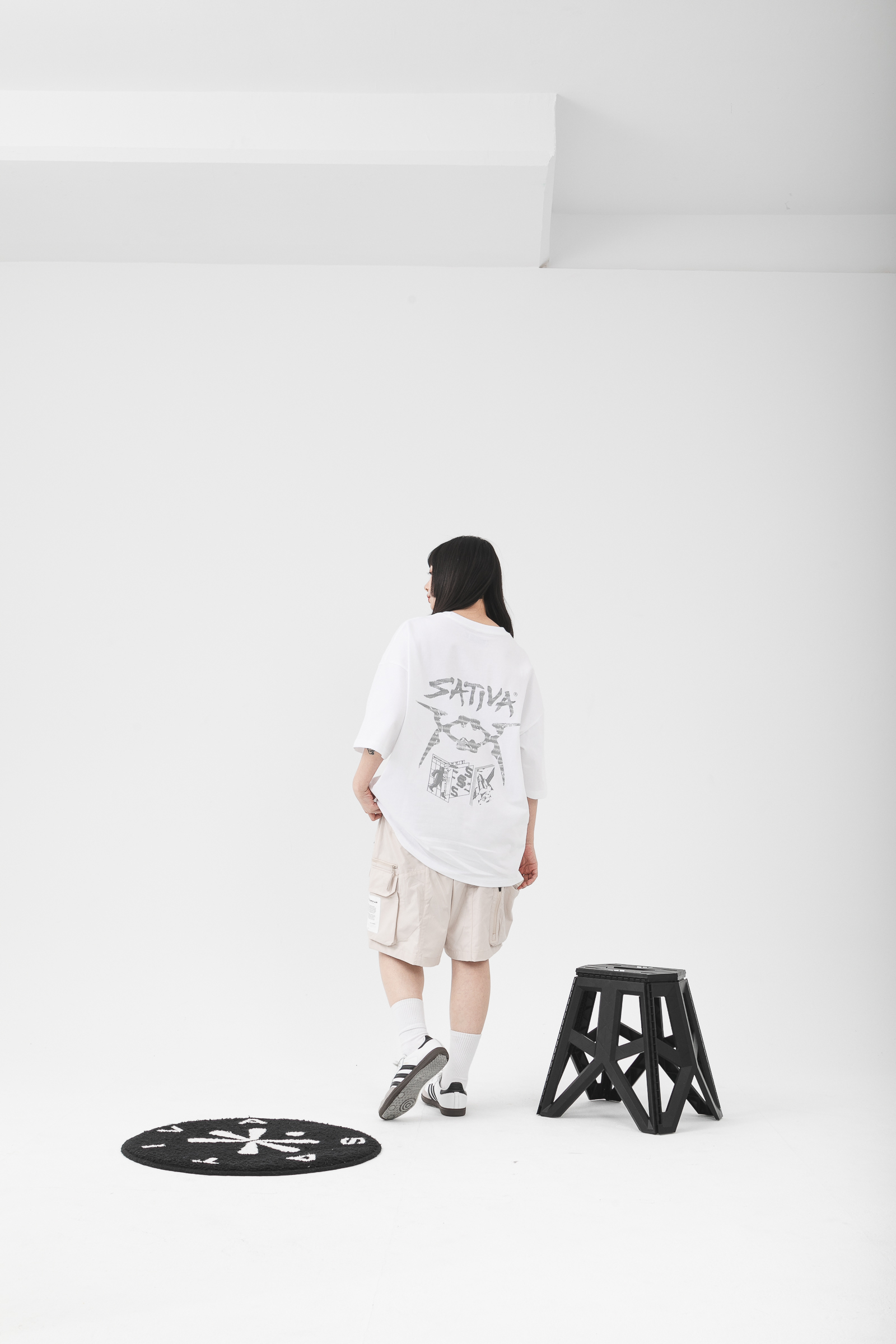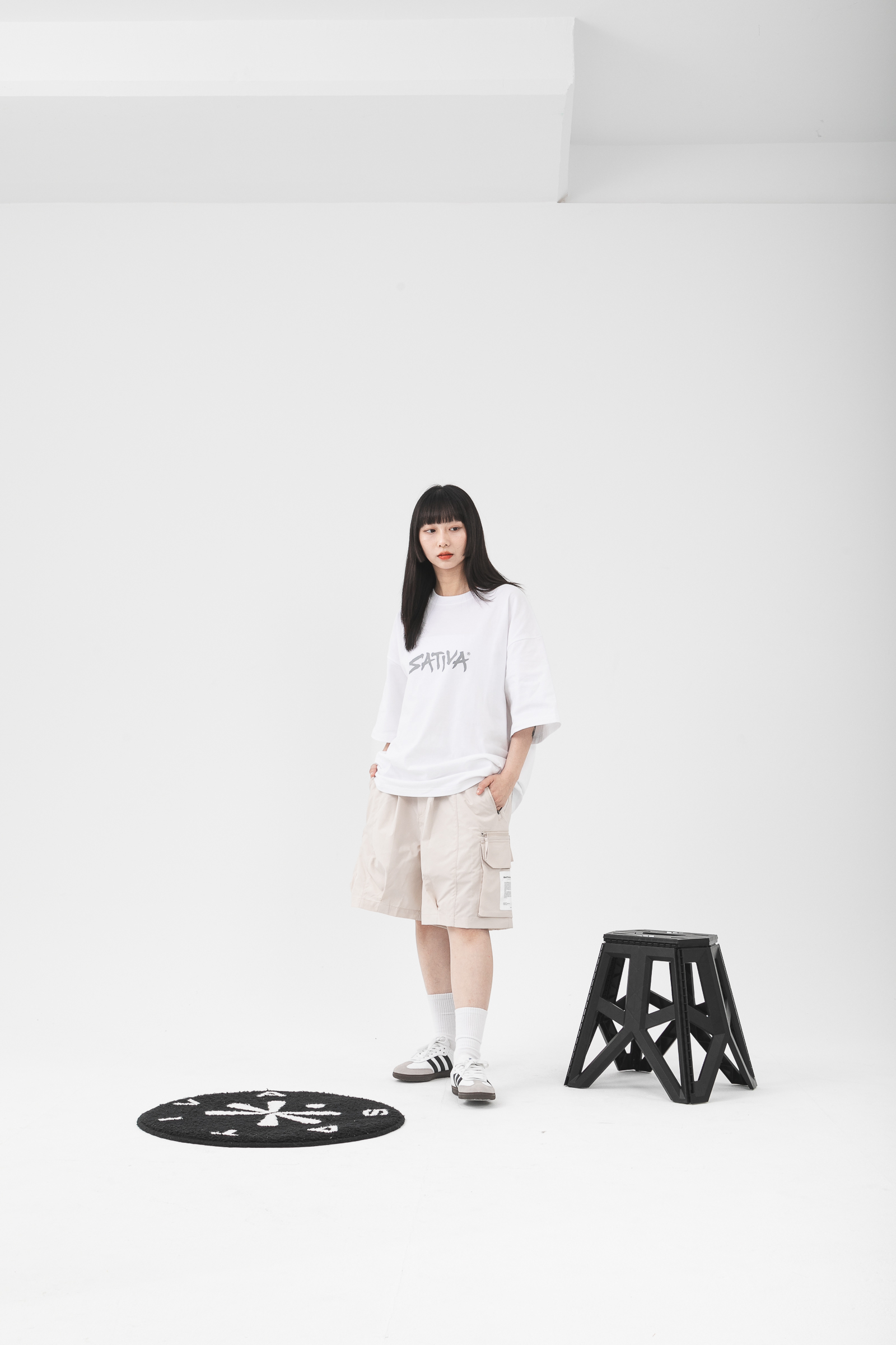 本次作品採用日本面料 100% Cotton透氣舒適純棉,設計理念依循未來科技概念,融入放射性、數據與宇航剪影元素作為主視覺,體現科技融入生活,以及對未來願景的想像;品牌LOGO以分裂的白舟體作為主要表徵;寬鬆版型賦予其穿著舒適度以及日常著用的便利性,信手拾起即穿梭未來遙視遠景。