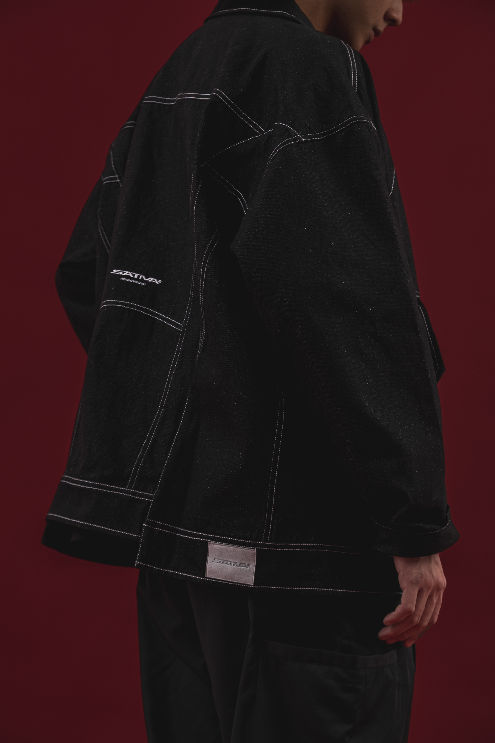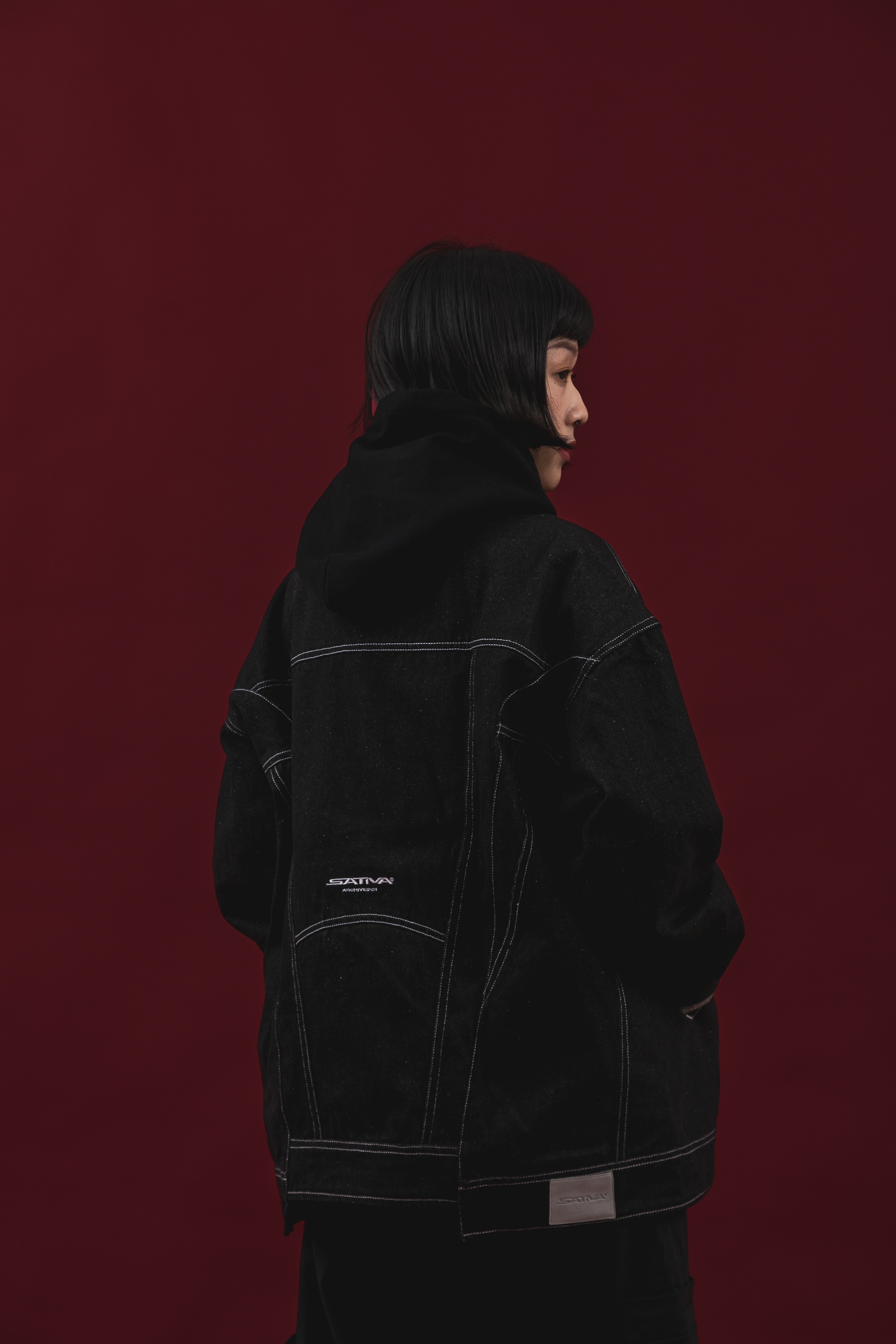 SATIVASTUDIO 2023AW季末款式,由眾多材質面料逐步檢索,我們嘗試跳脫不同的穿著風格,棉質尼龍橫縱之間選擇了以黑色丹寧作為象徵性結尾,牛仔品項向來為炙熱單品穿搭選擇,而我們從中作了多方改良,並以SATIVASTUDIO一貫的Urban Outfit核心概念,精選牛仔面料乘載過去丹寧的想像,並以多層次車縫線與拼接混為一疏,轉化為截然不同的穿著哲學,儘管如此亦是隨手即穿,隨性搭配的指標單品。