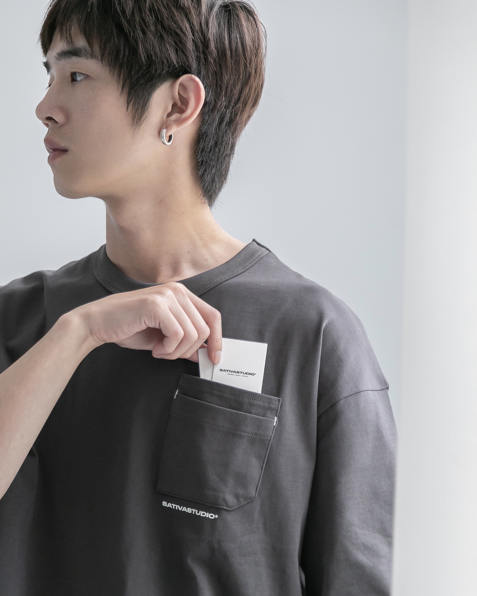 乘載夏季outfit風格與SATIVASTUDIO創立精神,單純即回歸初始,本次設計沿用品牌TAGLINE以隨性簡樸的形式融合品牌調性,愜意游走於城市之中所誕生的日常實著性產品,搭配雙層口袋設計使一般的單純不再單純,並於雙層口袋上配置“打棗”設計,使雙層口袋更加堅韌,不輕易鬆乏,口袋下方標註品牌LOGO作為點綴,給予最單純最細緻的穿著感受。