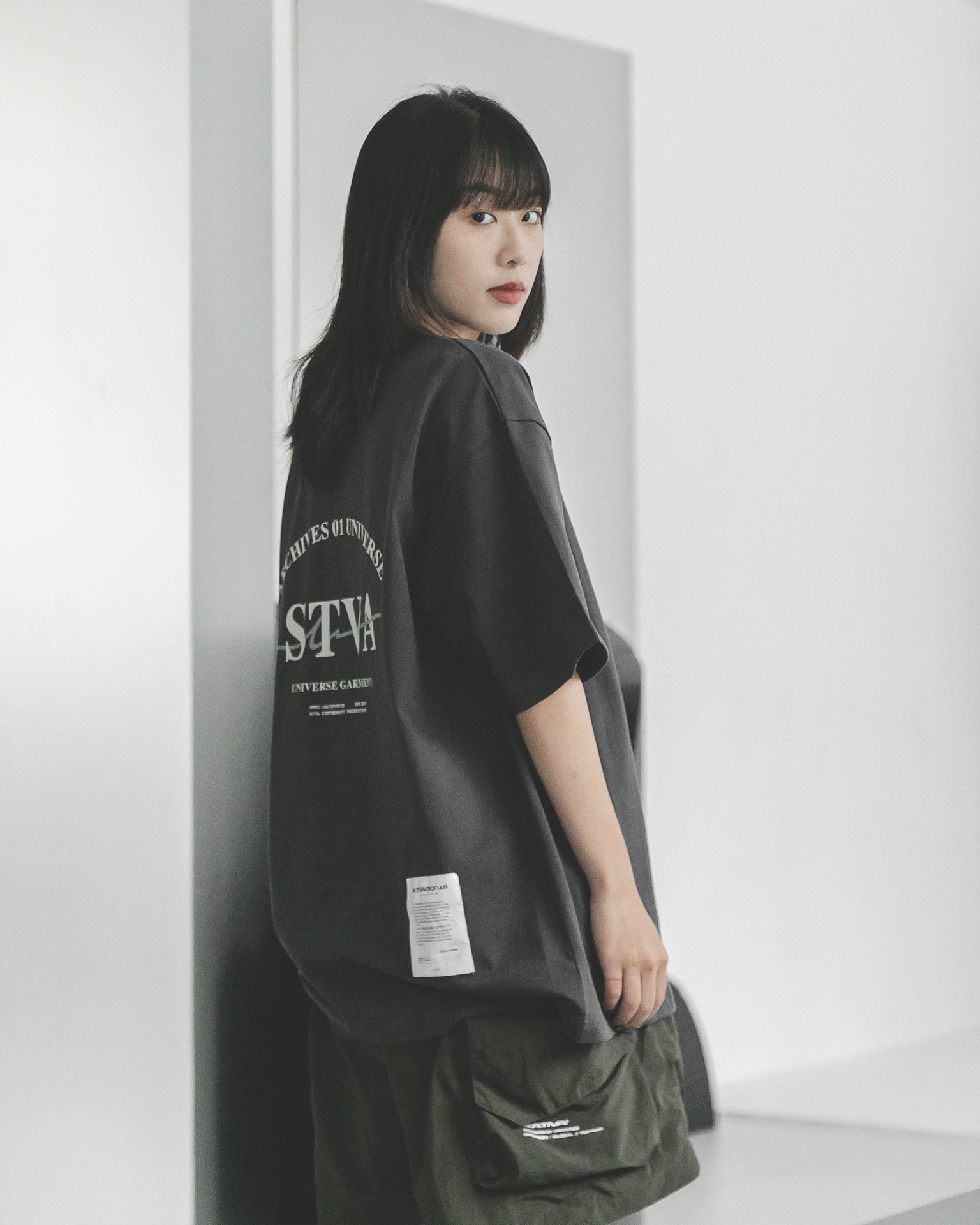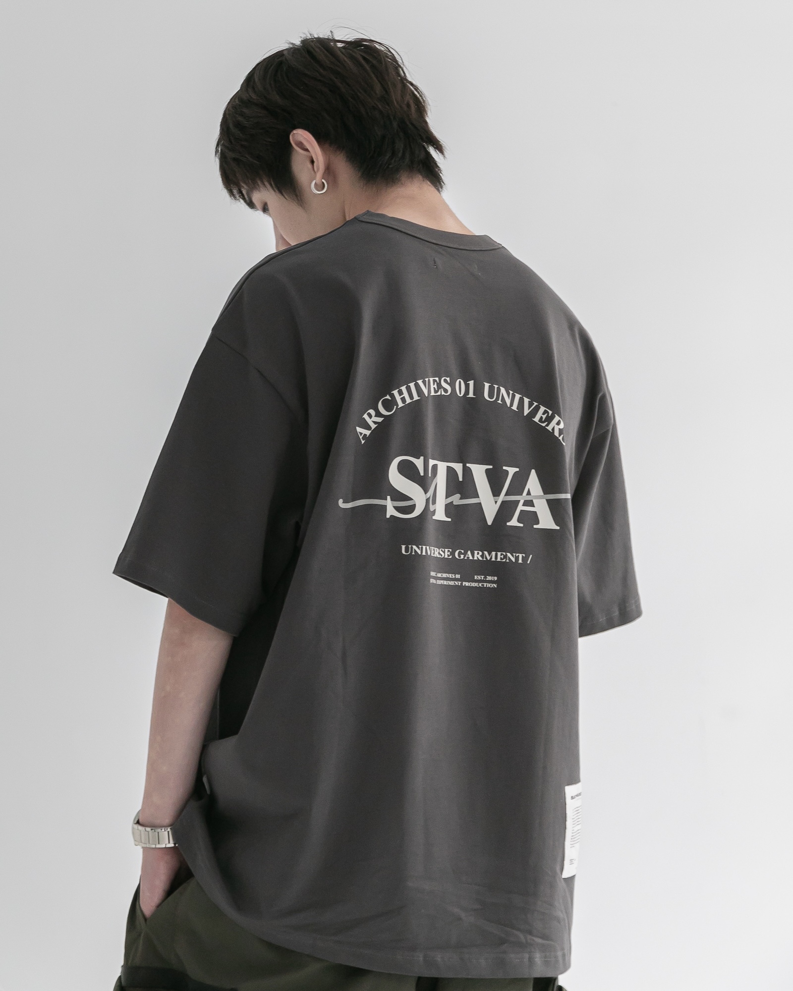本次作品布料採用100% Cotton透氣舒適純棉,質地柔順親膚,給予行走於城市中不凡的涼感體驗,版型寬鬆設計展現穿搭的延展性,使日常更加輕鬆愜意,穿搭與舒適形成多重感受;領口滾邊設計支撐起整體穿著樣態,下擺處輔以泰維克標與咬標設計,作為urban outfit 著用層次的舒適體驗。