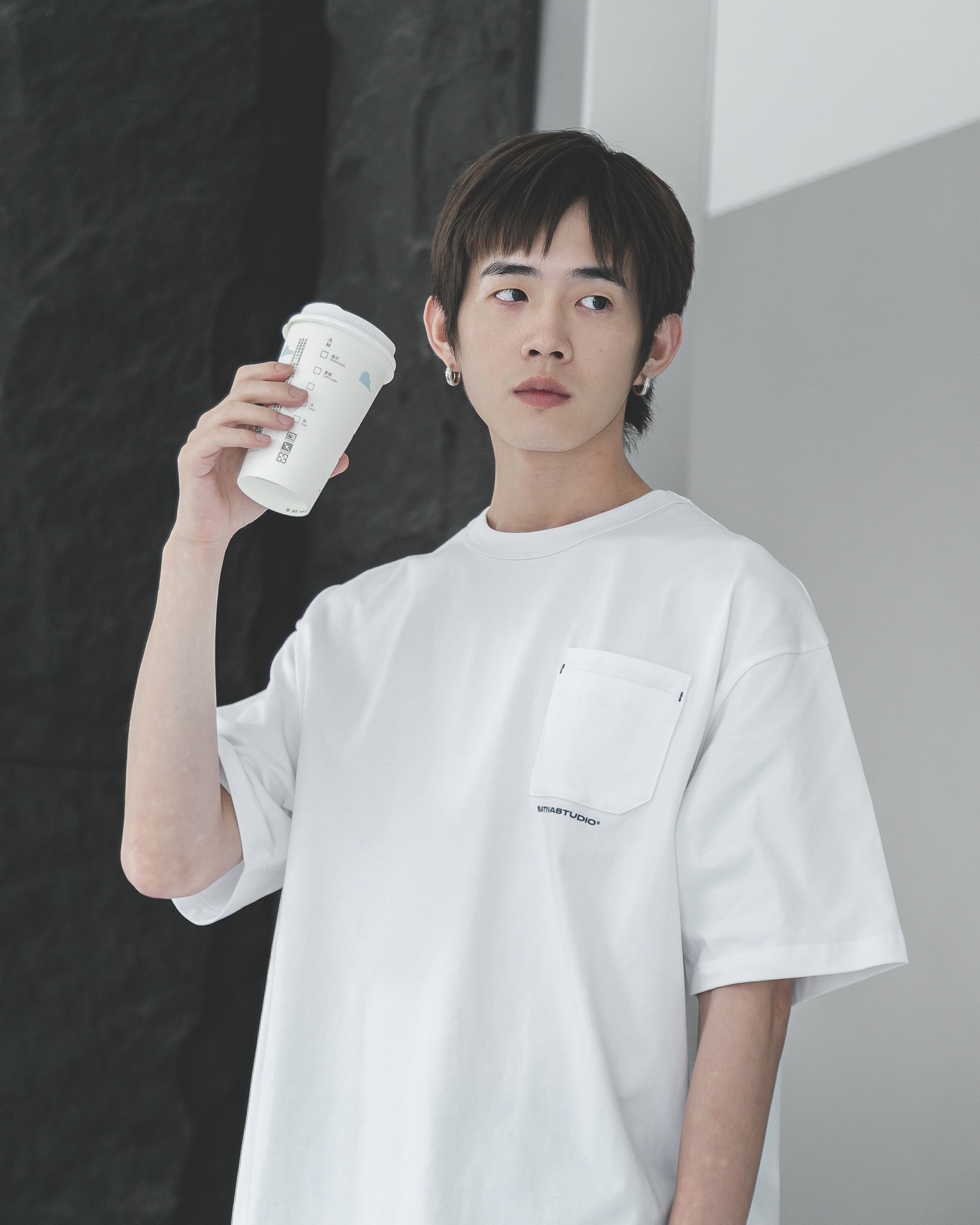本次作品布料採用100% Cotton透氣舒適純棉,質地柔順親膚,給予行走於城市中不凡的涼感體驗,版型寬鬆設計展現穿搭的延展性,使日常更加輕鬆愜意,穿搭與舒適形成多重感受;領口滾邊設計支撐起整體穿著樣態,下擺處輔以泰維克標與咬標設計,作為urban outfit 著用層次的舒適體驗。