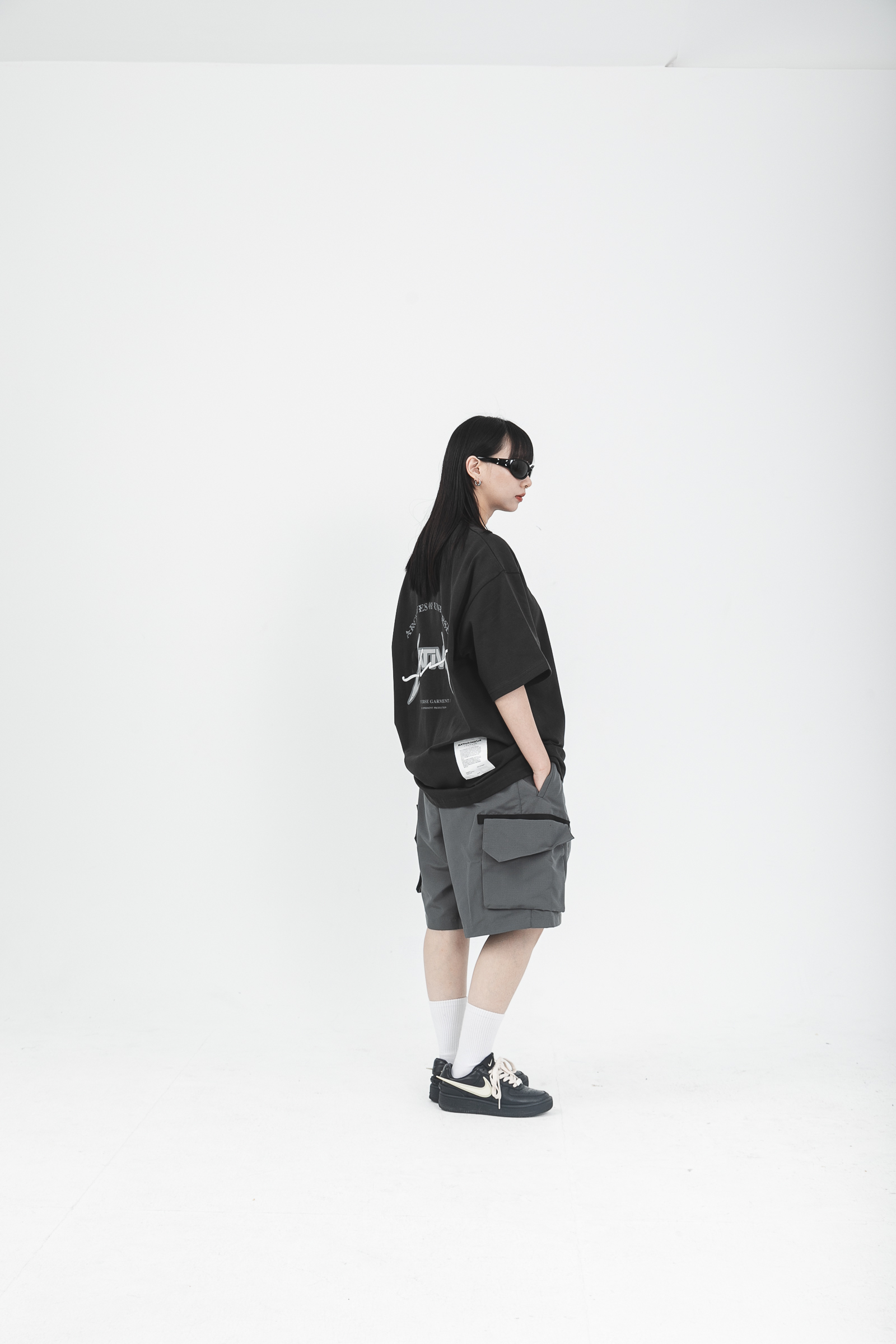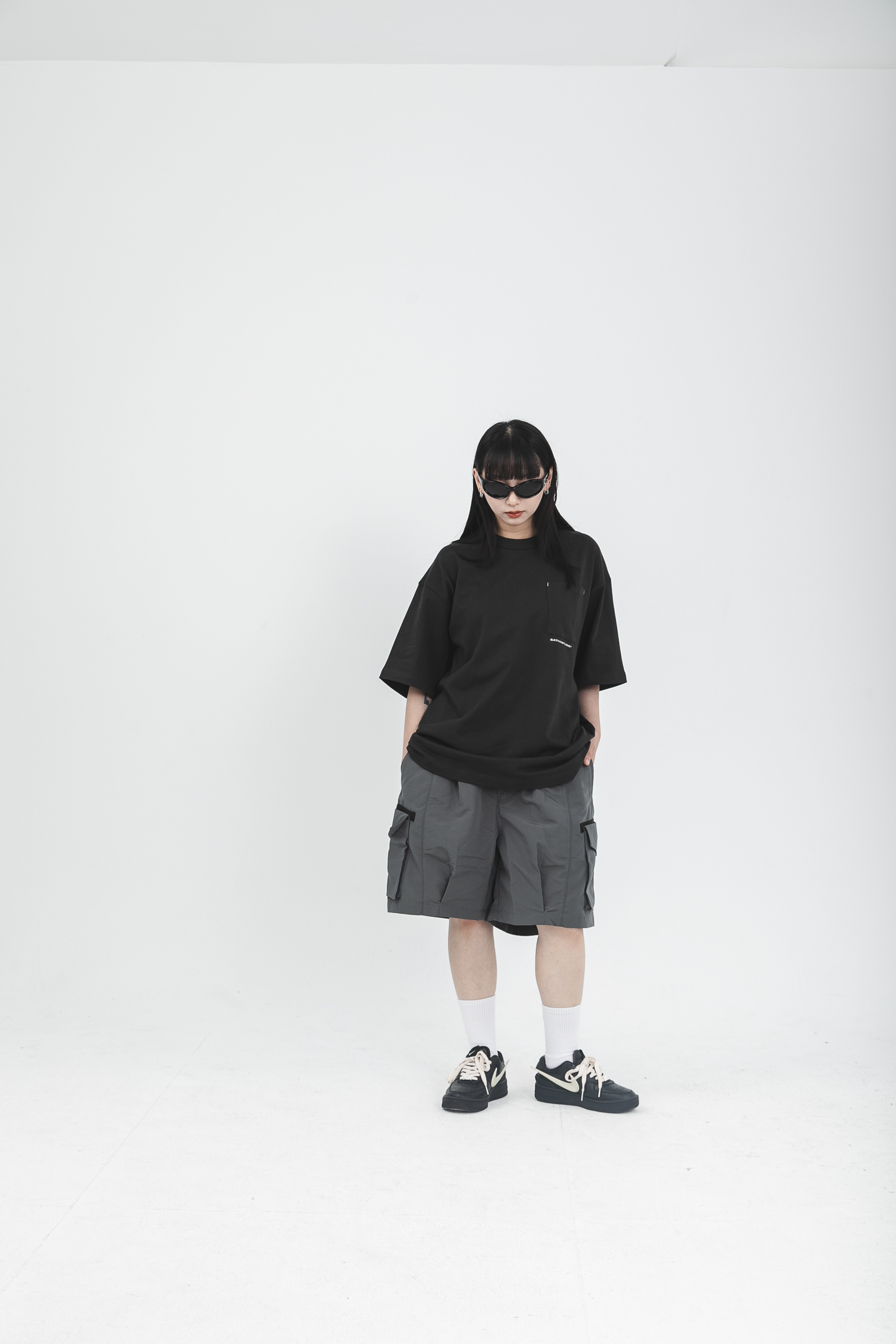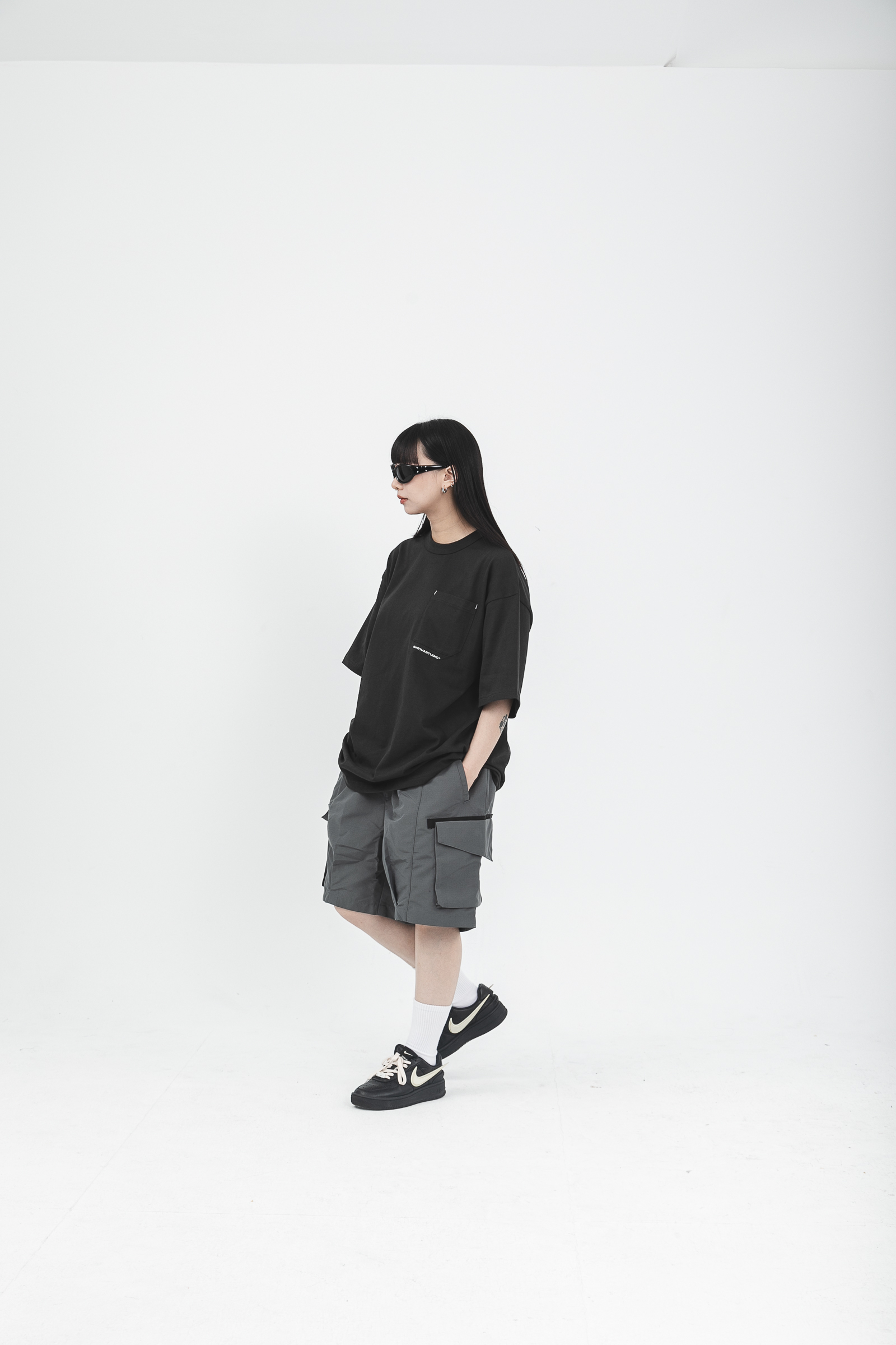 本次作品布料採用100% Cotton透氣舒適純棉,版型寬鬆舒適以及結合純棉透氣材質,給予穿著者夏季穿著的舒適性與日常穿搭想像,在純素面料上植入的口袋設計賦予整體穿搭層次,並在口袋處配置打棗設計與品牌TAGLINE使口袋更加強韌的同時,點綴其視覺效果,後背處延續”SUG-03”的簽名設計,為SATIVASTUDIO的穿搭留下數個足跡,並以速度感與指向性隱喻作為連線整體穿著效感,下擺處輔以泰維克標增添品牌調性,實現穿著的極簡主義並具有對日常穿著的賦權與個性流動。