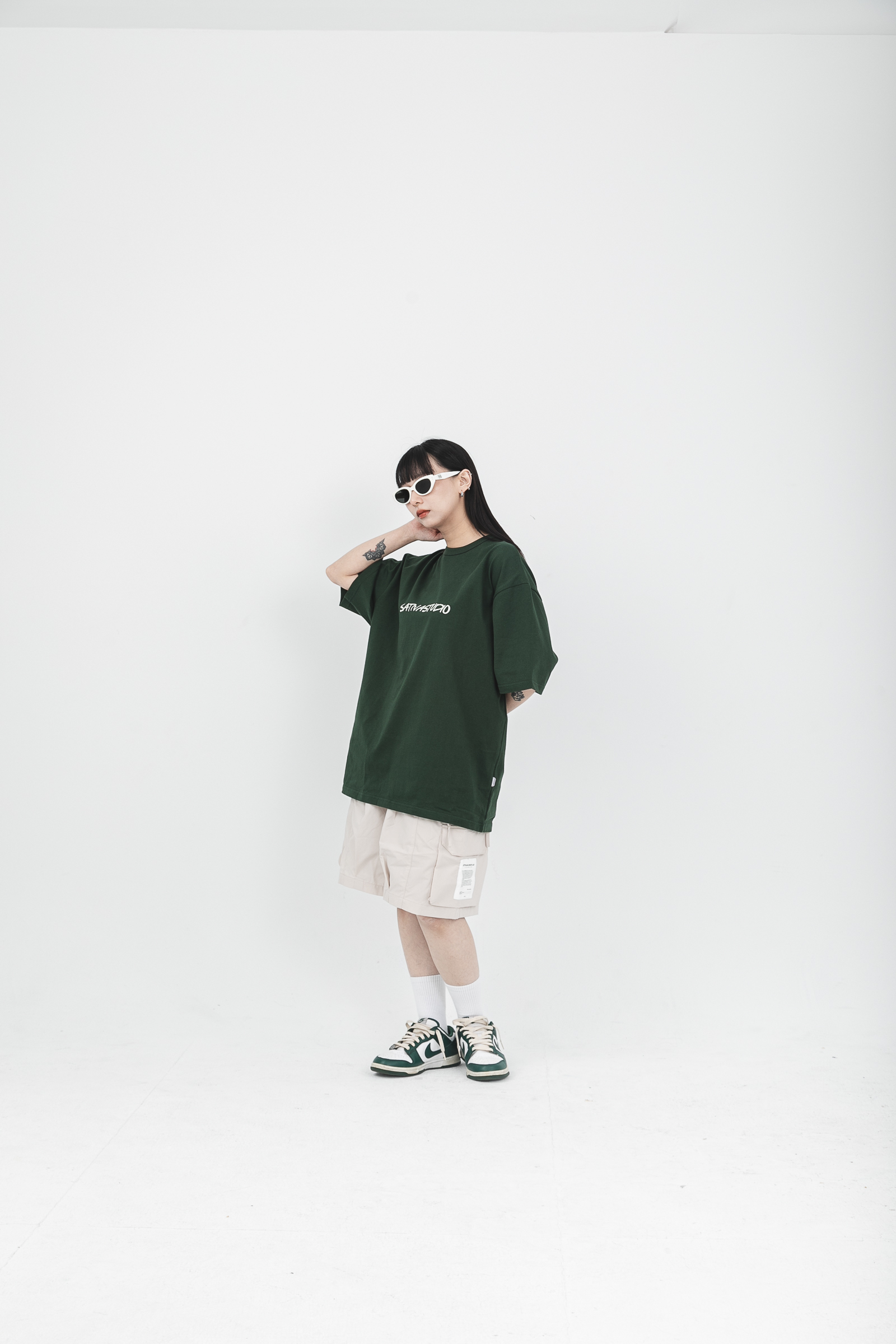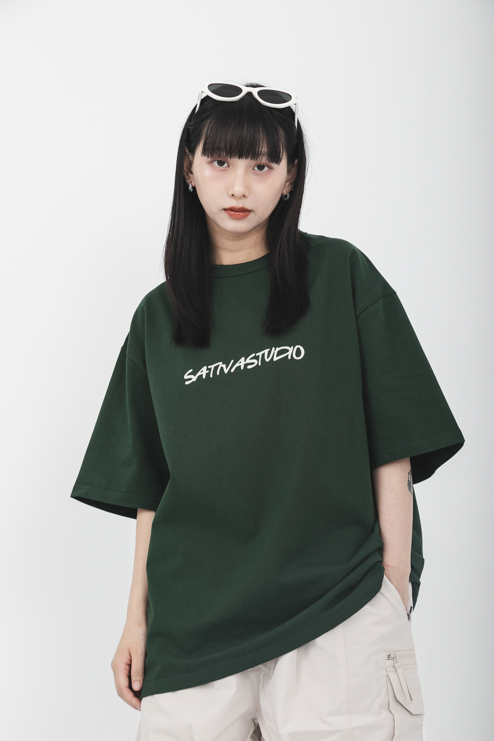 本次作品採用100% Cotton透氣舒適純棉,版型寬鬆舒適,設計版面簡而易搭,後背設計字樣採用品牌Tagline交錯並用,並於後頸處添加織帶點綴,任一組合經由任何排列後能夠創造不同可能與想像,穿搭亦是如此;正面字樣採用品牌手寫字體設計,試圖拼湊出不同的視覺感受,打破SATIVASTUDIO貫徹至今的設計風格,傳承Urban Outfit的精神,讓行人在路上找到屬於自己的組合與歸宿。