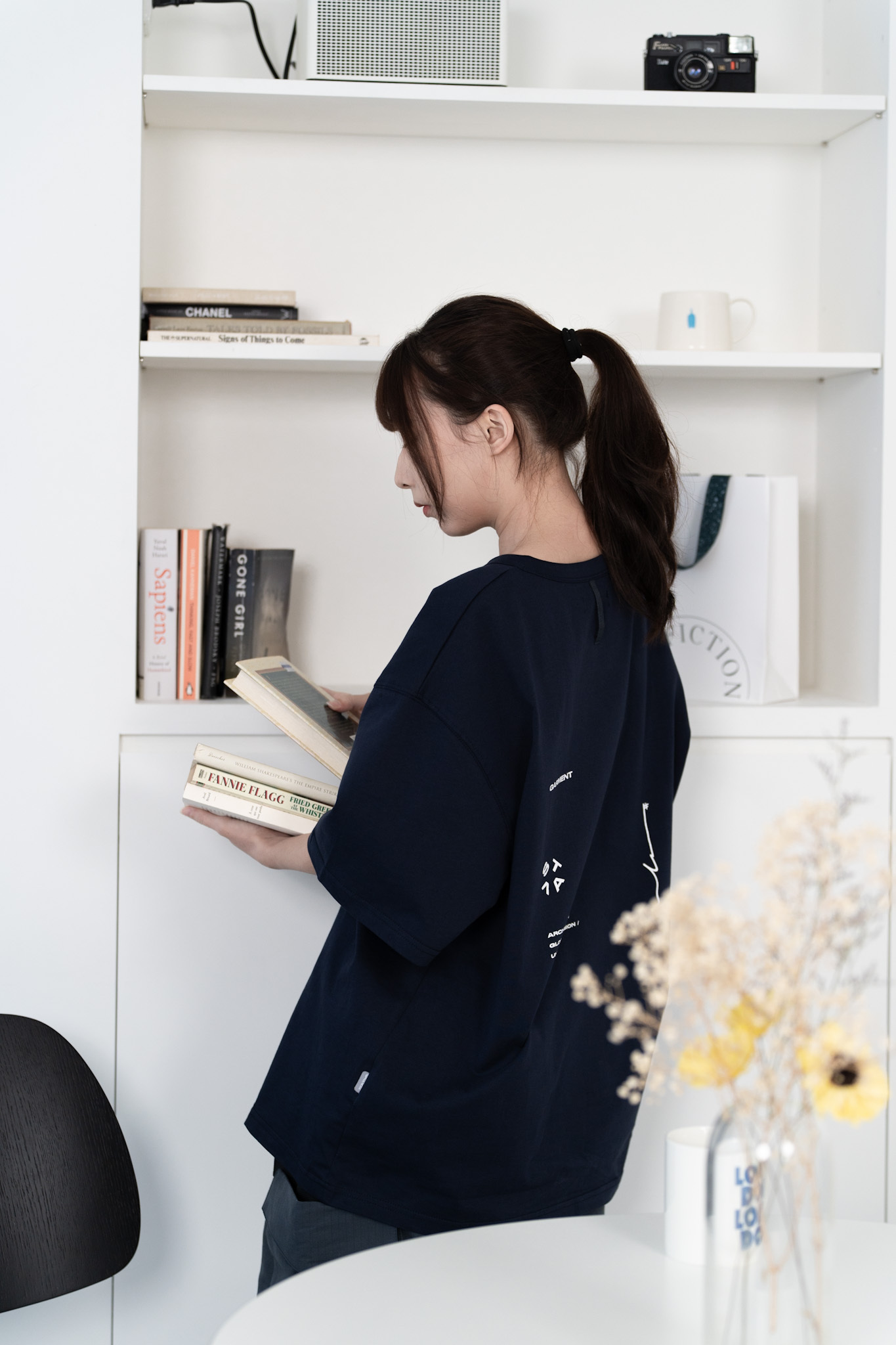 本次作品採用100% Cotton透氣舒適純棉,版型寬鬆舒適,設計版面簡而易搭,後背設計字樣採用品牌Tagline交錯並用,並於後頸處添加織帶點綴,任一組合經由任何排列後能夠創造不同可能與想像,穿搭亦是如此;正面字樣採用品牌手寫字體設計,試圖拼湊出不同的視覺感受,打破SATIVASTUDIO貫徹至今的設計風格,傳承Urban Outfit的精神,讓行人在路上找到屬於自己的組合與歸宿。