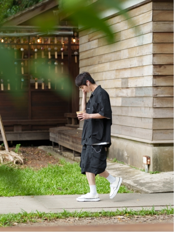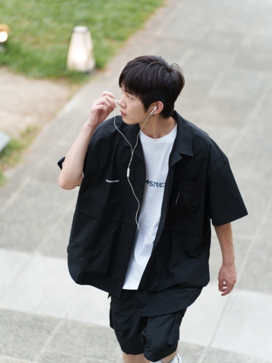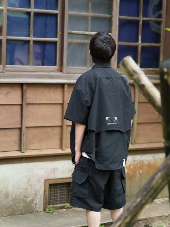 本次TS-02 採用100% NYLON輕薄面料,並以劍領領口撐起版型,寬鬆設計給予穿著者舒適愜意的穿搭體驗,前片左胸配置磁吸式雙層口袋輔以品牌印花點綴,配置鈕扣對色設計,在日常生活中增添隨性且常規的儀式感;下方兩側在插袋上內嵌隱藏式口袋,著以水滴拉鍊外型與泰維克標,有別於過往對外衣的既定印象," TS-02 ",在版型設計上添加對維度與現實生活之間的想像層層相扣;後片不規則剪裁設計為穿著者提供穿搭邏輯上的可能性與延伸,下擺處配置咬標以及長夾標設計,搭配維度主體pattern以及品牌Tagline,訴說SATIVASTUDIO的品牌寓意以及對於想像生活的再現,將Urban Outfit融入生活Vibe。