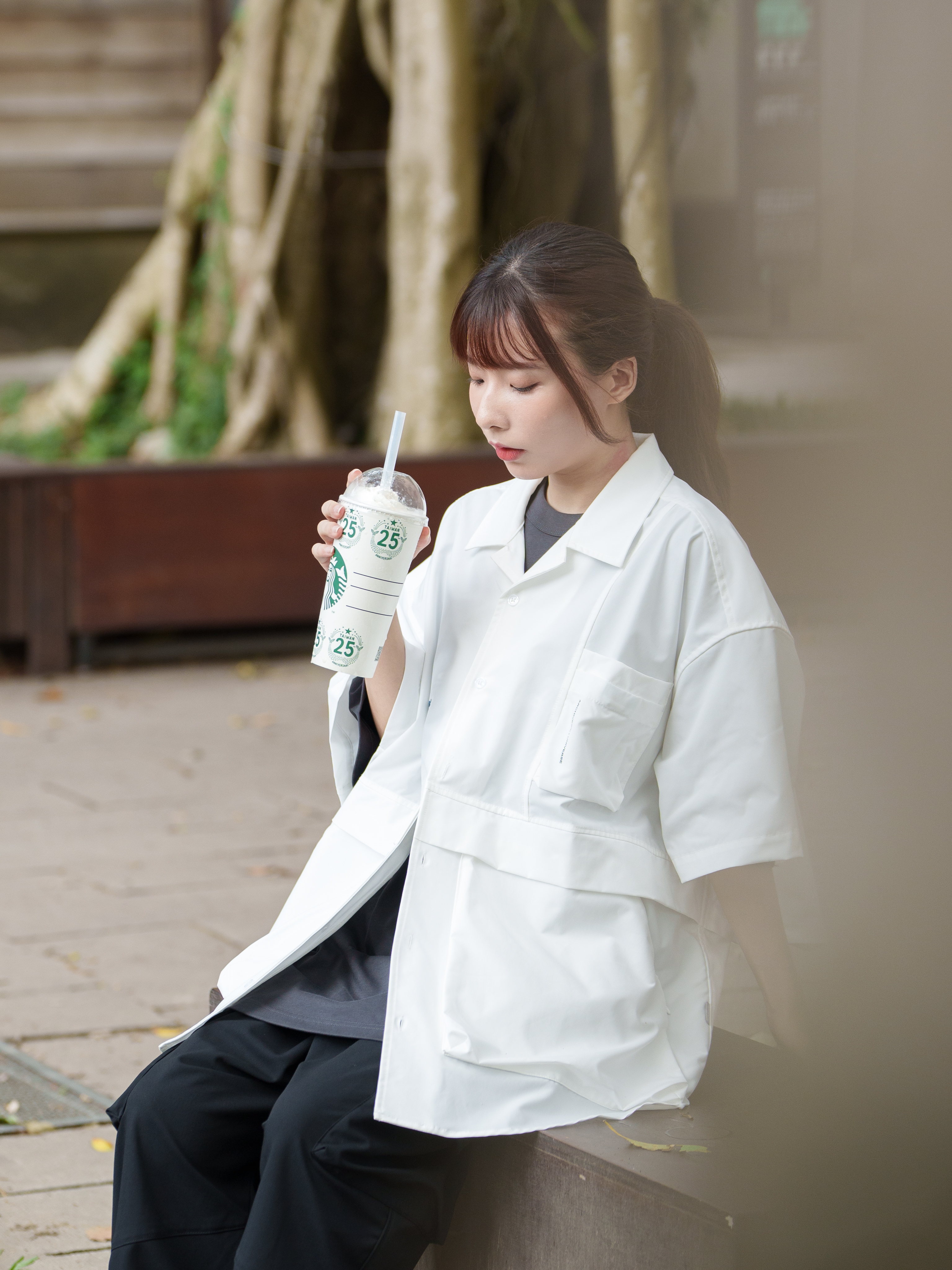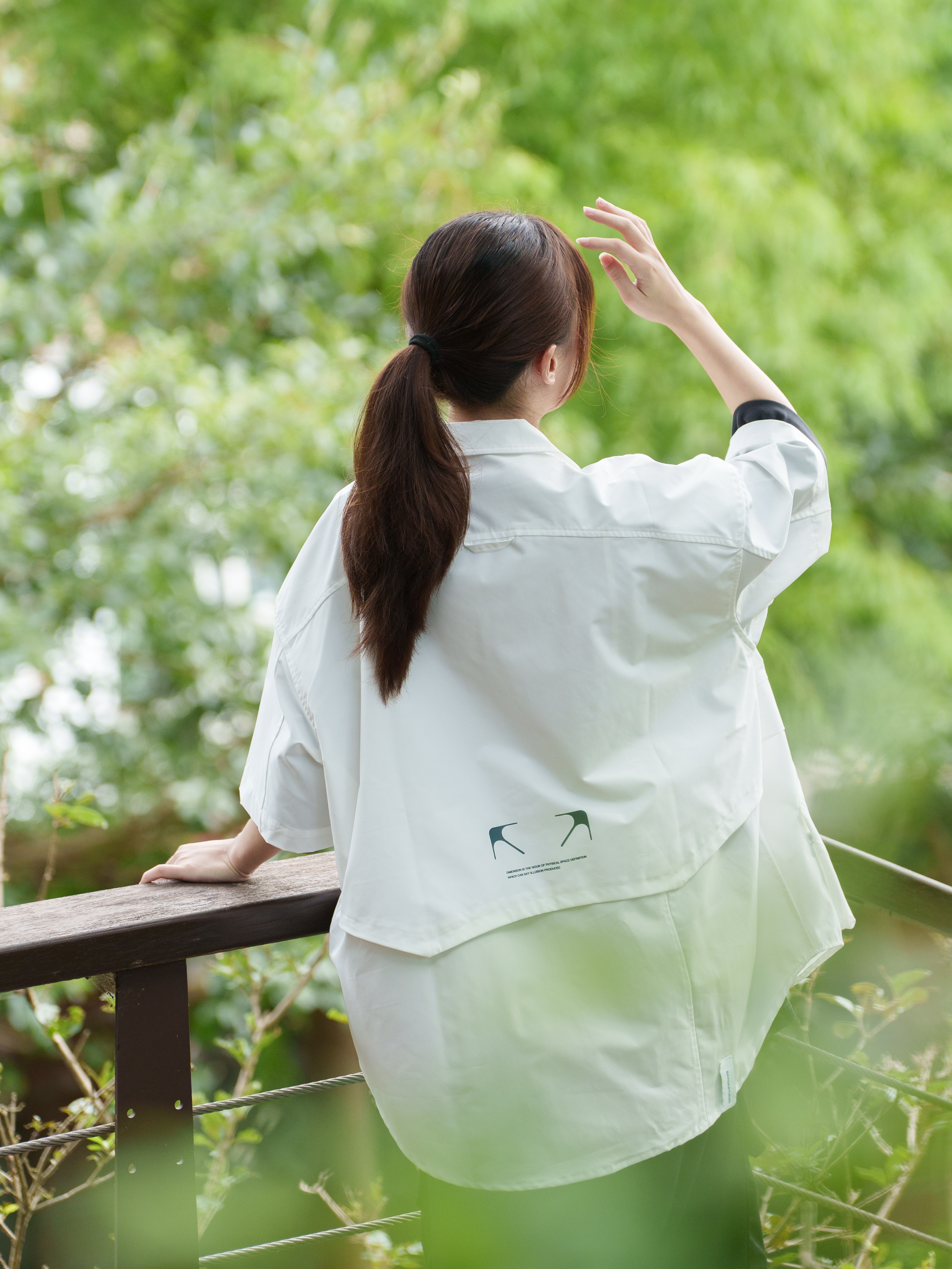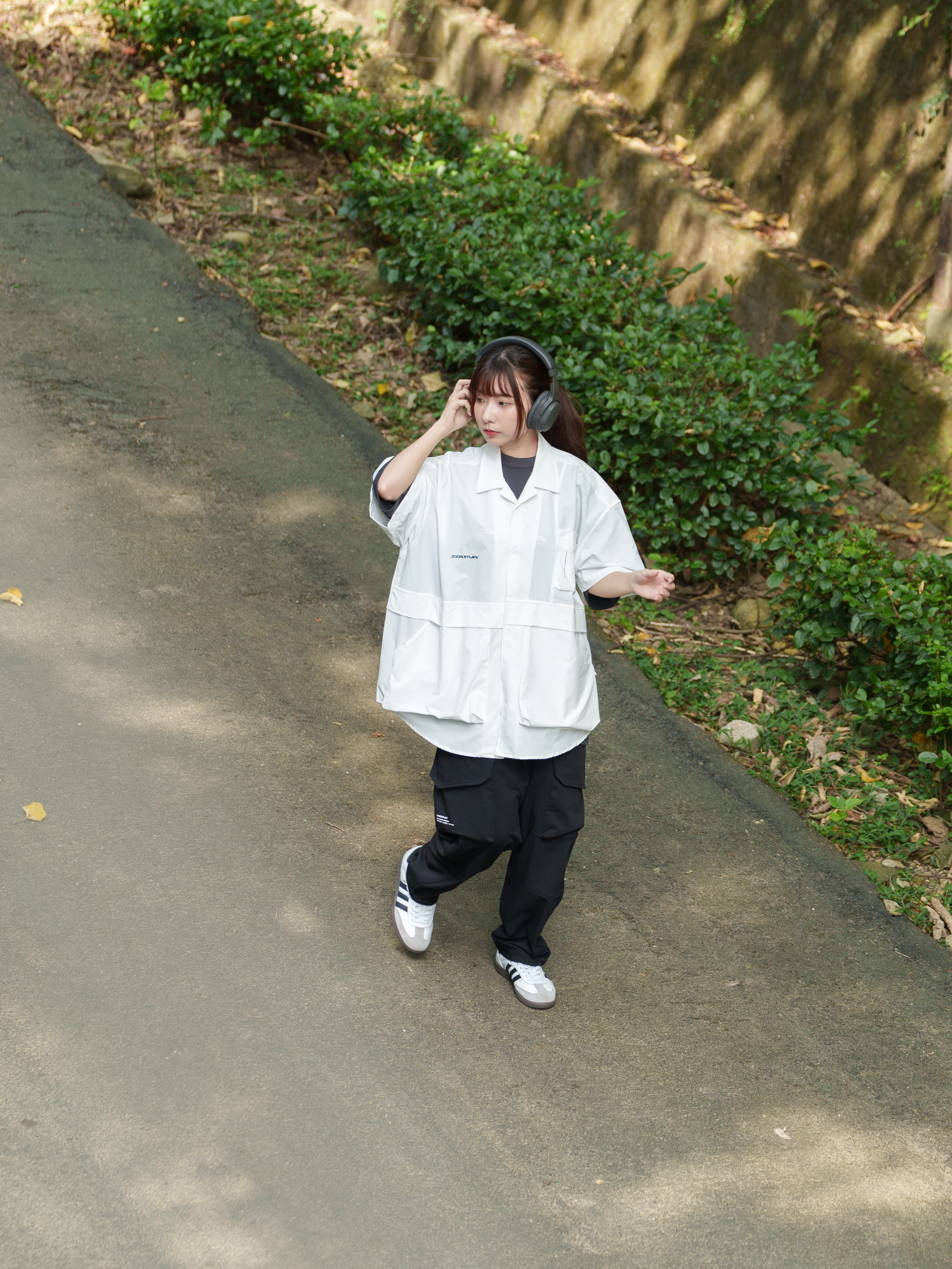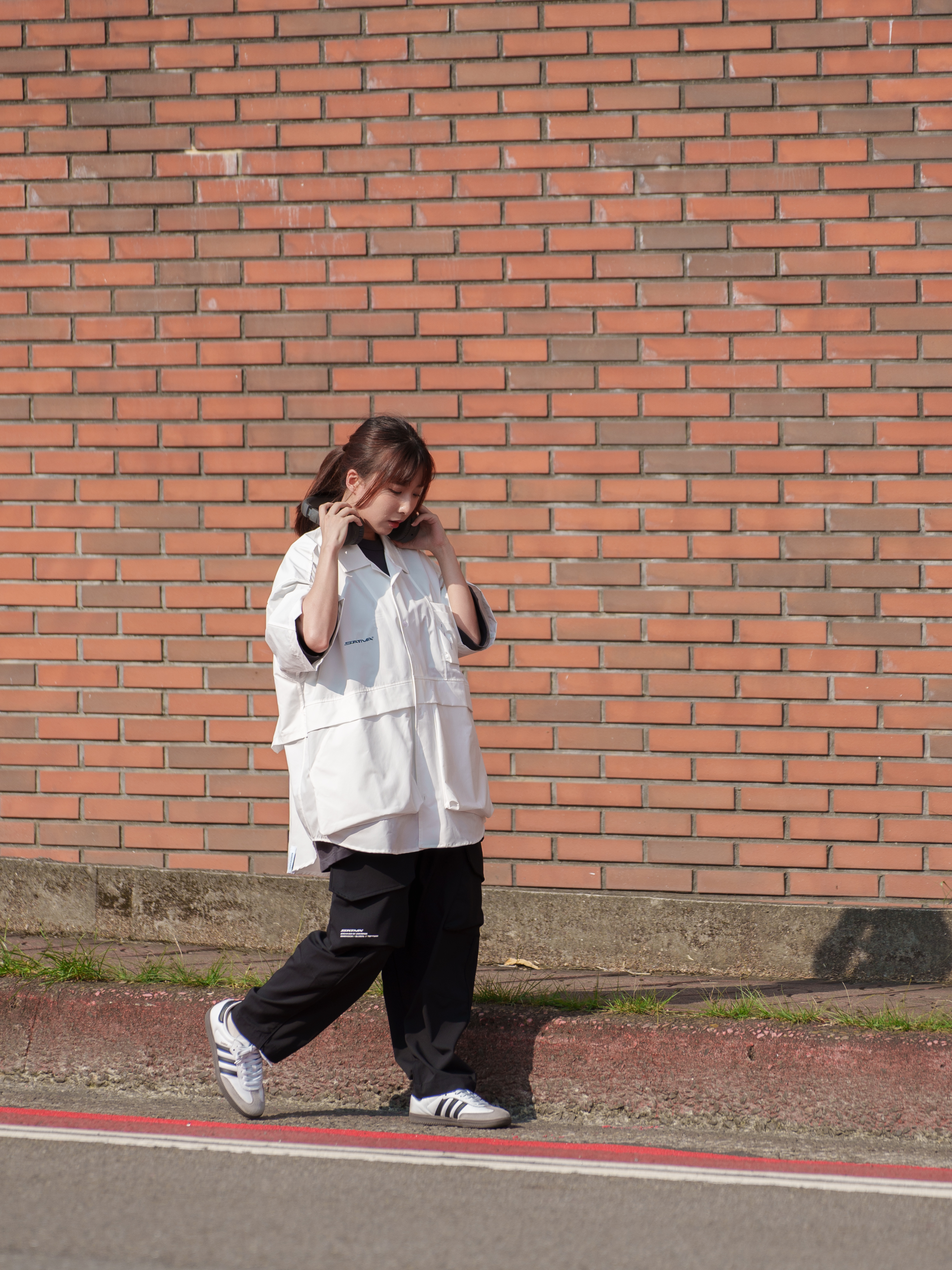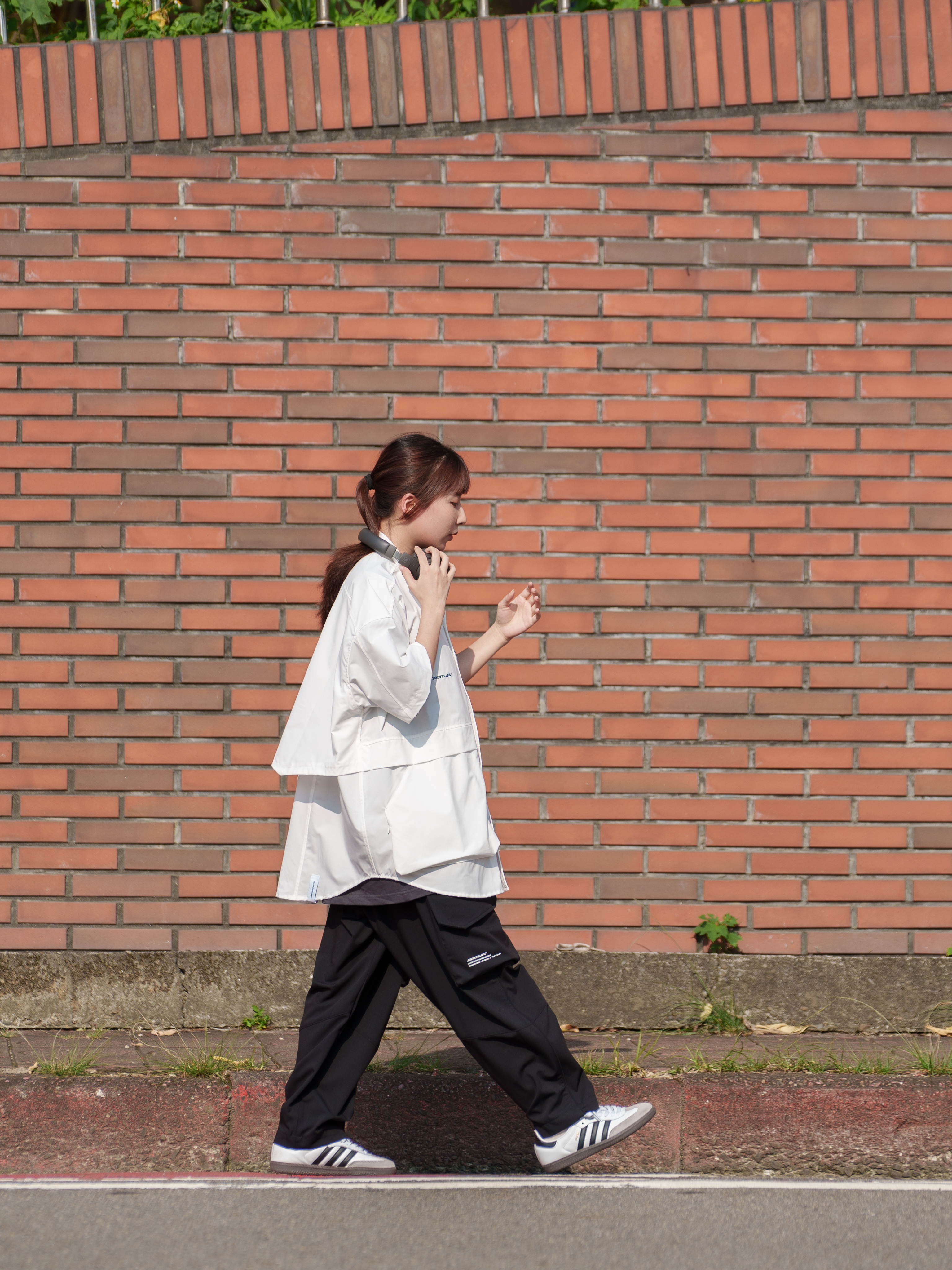 本次TS-02 採用100% NYLON輕薄面料,並以劍領領口撐起版型,寬鬆設計給予穿著者舒適愜意的穿搭體驗,前片左胸配置磁吸式雙層口袋輔以品牌印花點綴,配置鈕扣對色設計,在日常生活中增添隨性且常規的儀式感;下方兩側在插袋上內嵌隱藏式口袋,著以水滴拉鍊外型與泰維克標,有別於過往對外衣的既定印象," TS-02 ",在版型設計上添加對維度與現實生活之間的想像層層相扣;後片不規則剪裁設計為穿著者提供穿搭邏輯上的可能性與延伸,下擺處配置咬標以及長夾標設計,搭配維度主體pattern以及品牌Tagline,訴說SATIVASTUDIO的品牌寓意以及對於想像生活的再現,將Urban Outfit融入生活Vibe。