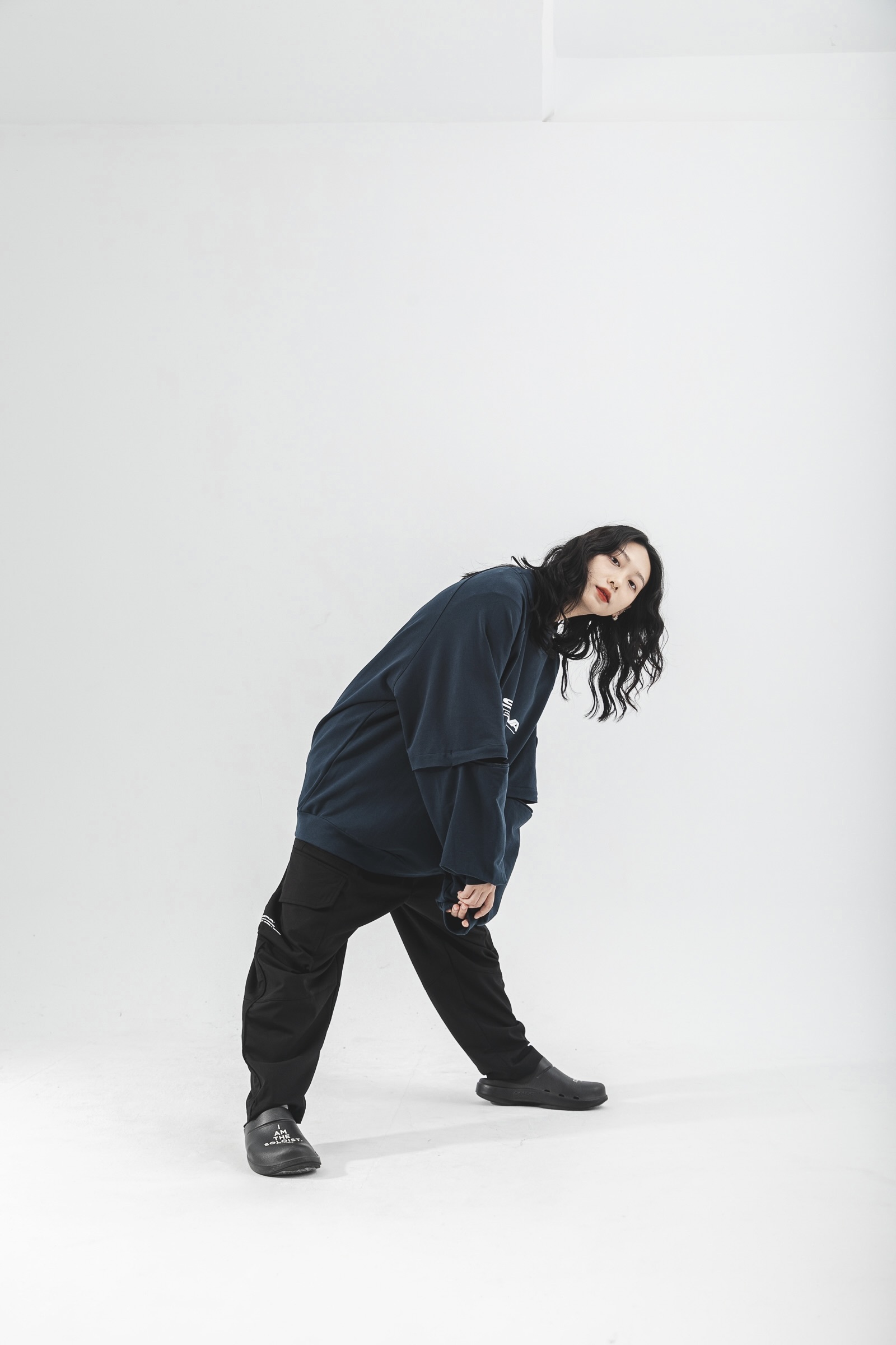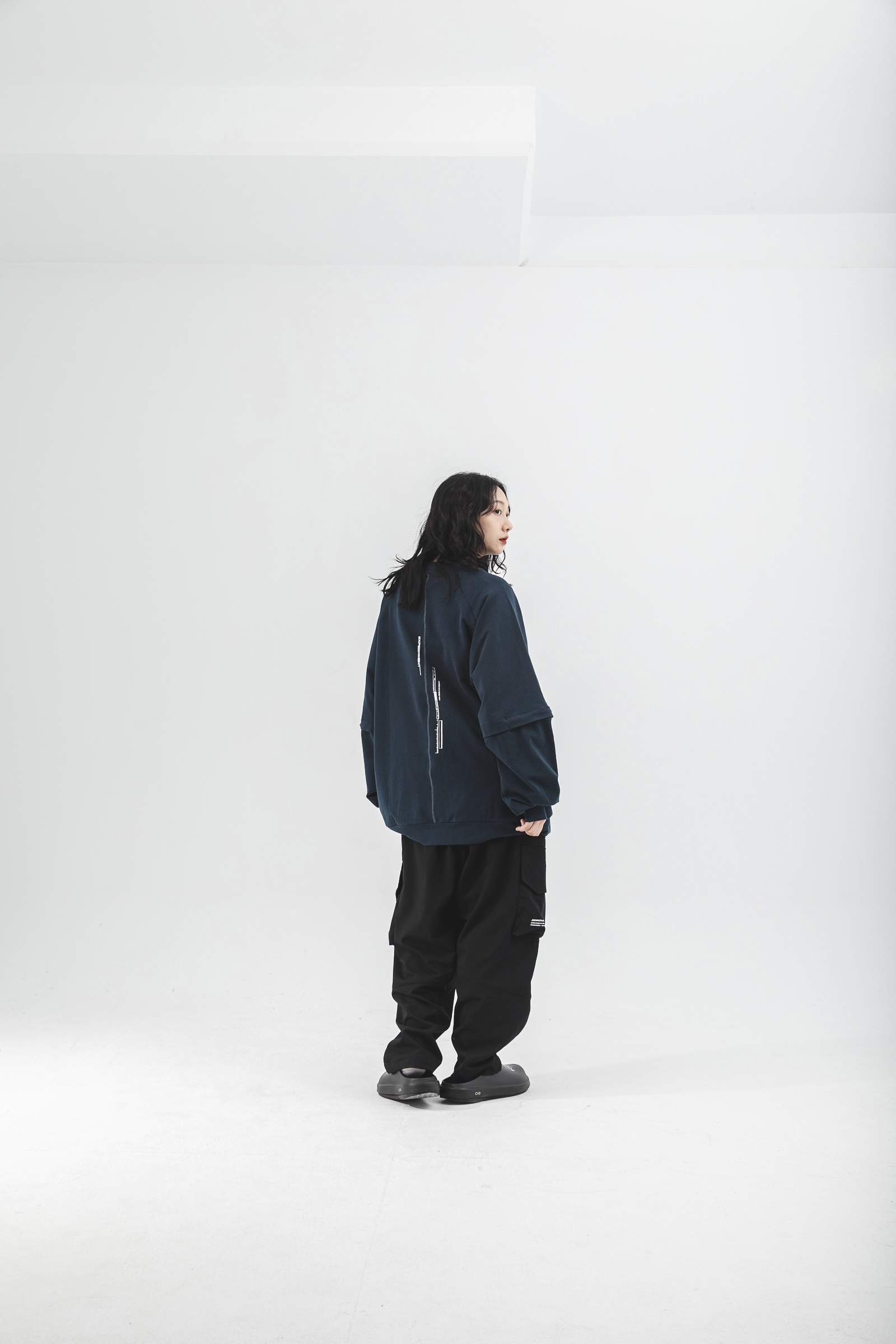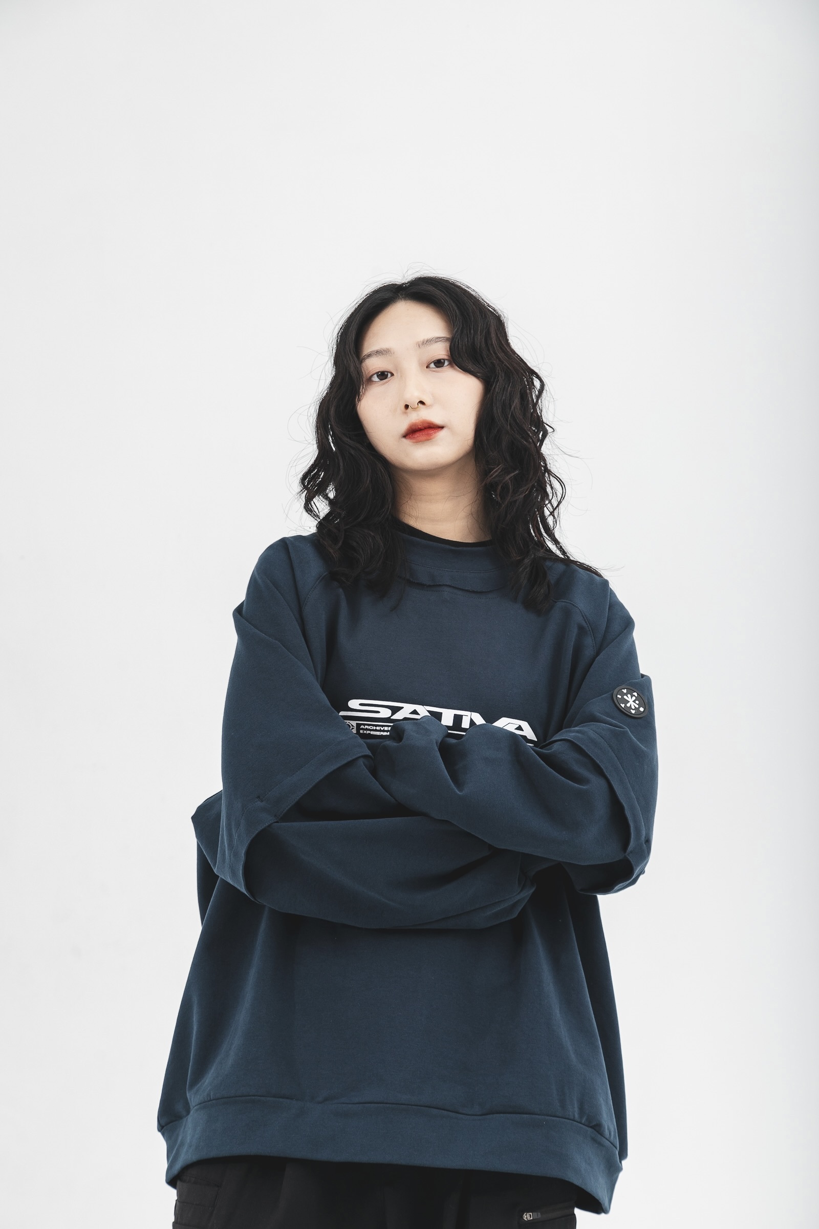 本次作品採用95% Cotton與5% SP彈性纖維,面料升級保有棉質的透氣性以及彈性棉襖的舒適感,結合圓領拼接層次不收編寬鬆版型設計,整體俐落輕盈,研擬四季皆可著用且適配任何場域的兼容並蓄;拼接剪裁採用拉克蘭袖設計,流線調節適合各種身型與體態者著用,並於兩處袖口新增拉鍊半雙開彈片設計,給予穿搭層次形塑更多層次與任何排列組合,創造屬於自己的穿著風格;衣身正面主視覺採SATIVASTUDIO LOGO,左袖以品牌膠標點綴;衣身後背採爬線拷克縫接布料本體與設計元素,附以品牌Tagline,原意實驗性單品與網頁原子時間軸,象徵原子質量的重新建構。